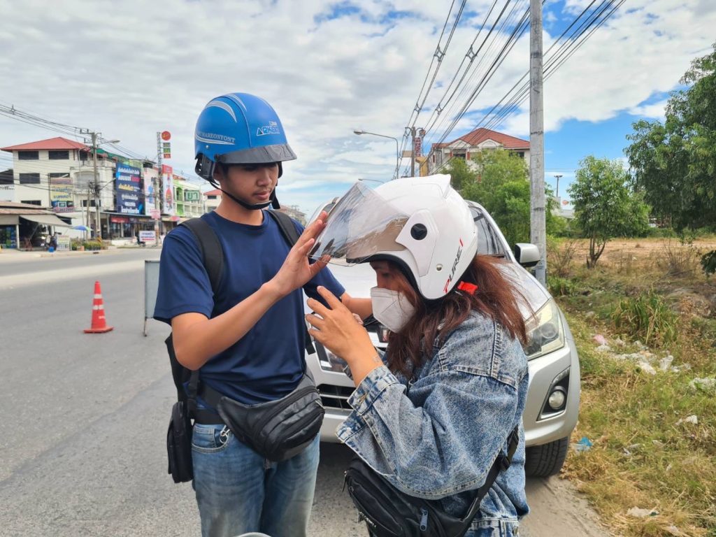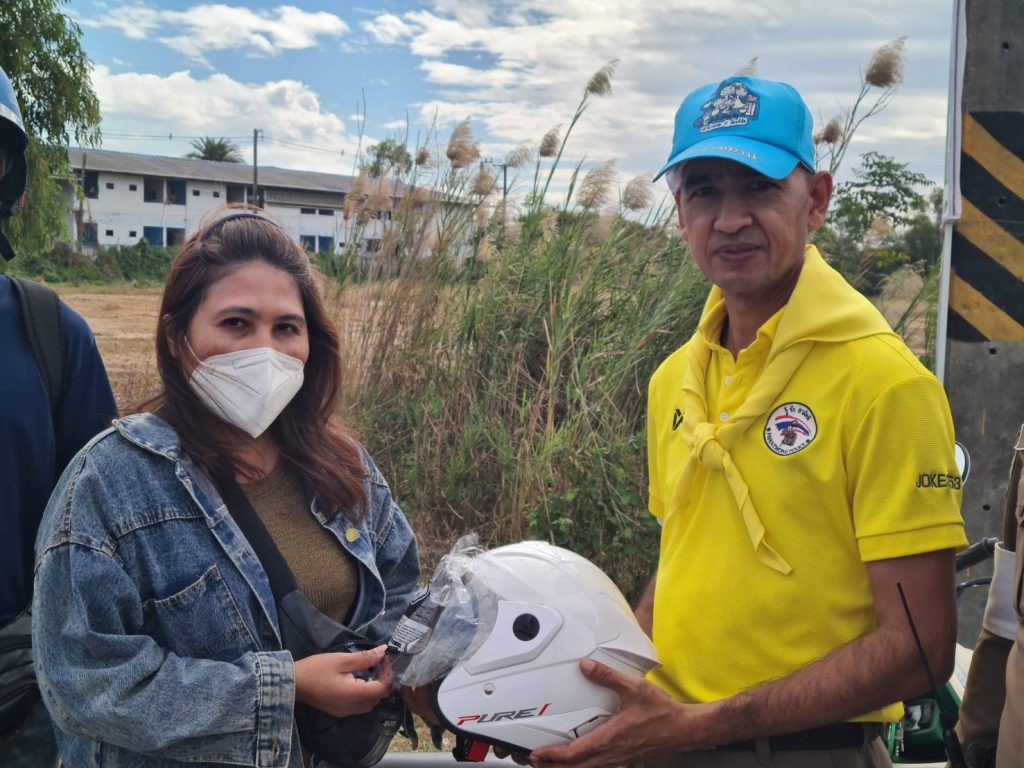 หมวกนิรภัยที่ได้มาตรฐาน ประกอบกับได้สาธิตการสวมใส่หมวกนิรภัยอย่างถูกวิธี พร้อมทั้งเป็นจิตอาสาเชิญชวน รณรงค์เป็นแบบอย่างในการสวมหมวกนิรภัยขณะขับขี่จักรยานยนต์ต่อไป