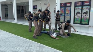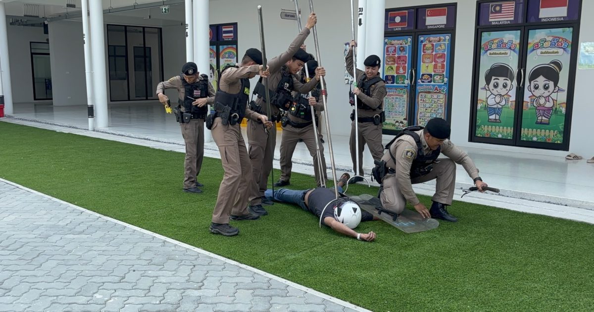 พร้อมข้าราชการตำรวจ สภ.พานทอง ซ้อมแผนเผชิญเหตุ Active shooter หนีซ่อนสู้ ณ ศูนย์พัฒนาเด็กเล็กตำบลพานทองหนองกะขะ ต.พานทอง อ.พานทอง จ.ชลบุรี