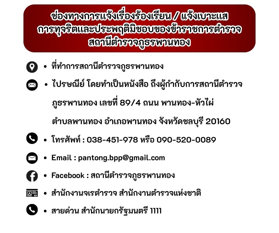 ระบบร้องเรียน/ร้องทุกข์ออนไลน์ ของสถานีตำรวจภูธรพานทอง